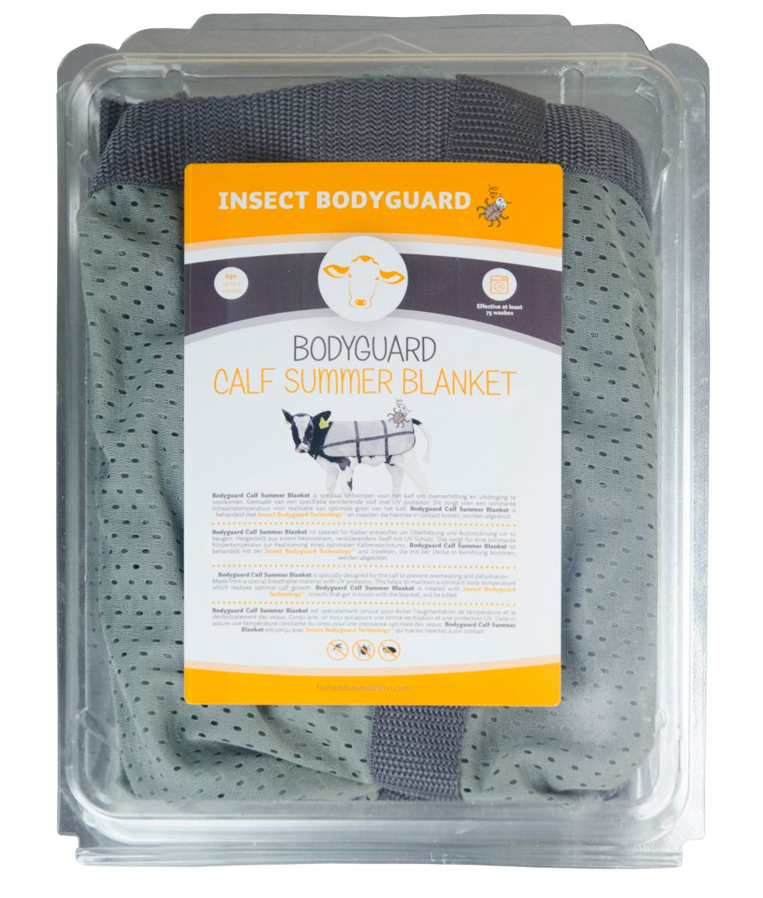 Sobald Insekten mit der Insect Bodyguard Technology in Berührung kommen, werden sie abgetötet. Das Bodyguard Calf Summer Blanket ist mittels der Insect Bodyguard Technology mit dem Biozid Permithrin behandelt, wovon der wirksame Stoff auf einer natürlichen Ausscheidung der Chrysantheme basiert. Der langlebige Stoff ist in jede Faser des Stoffs gewoben und wirkt bis zu 75 Waschgänge.