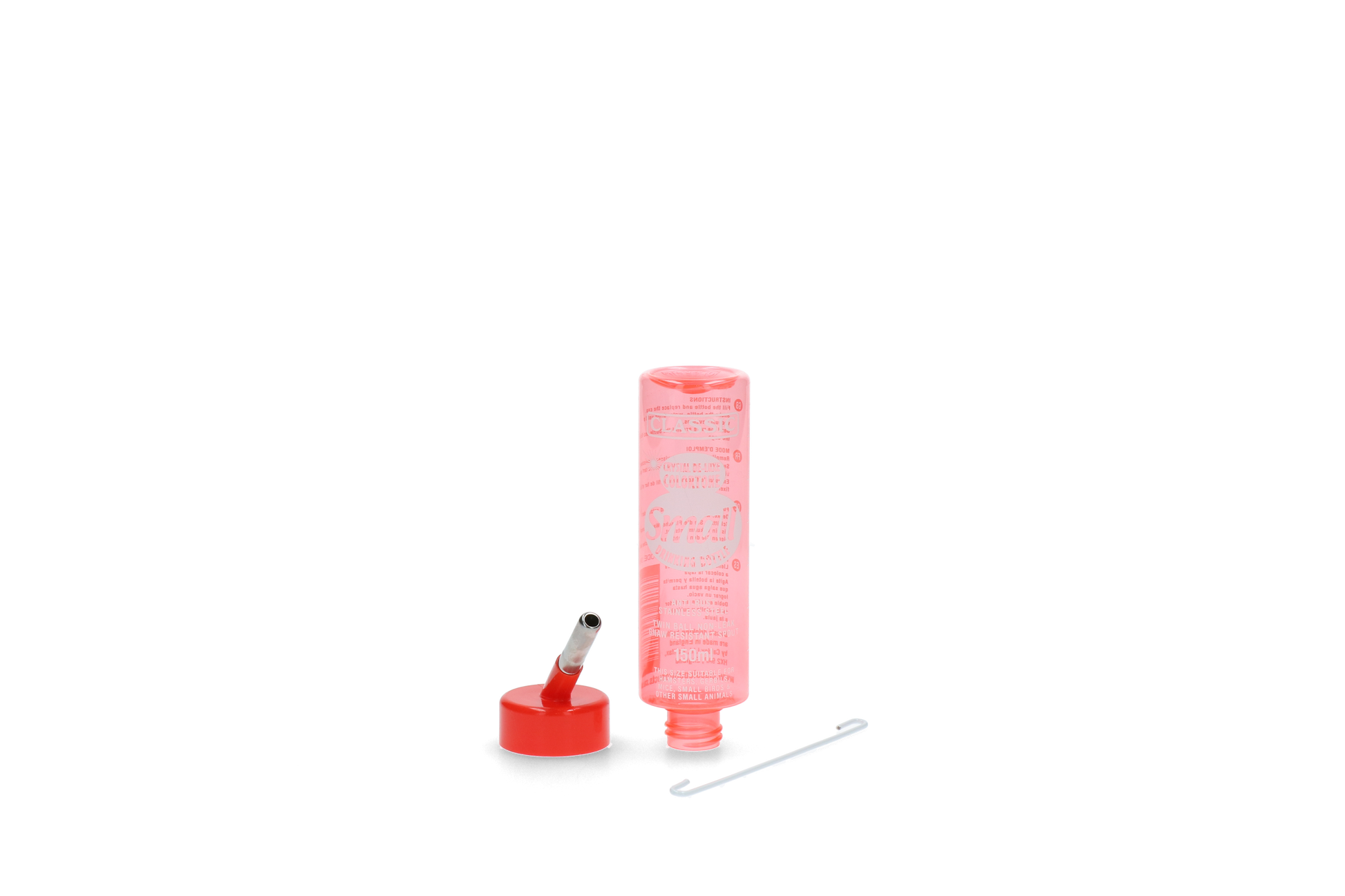 Schütteln Sie die Flasche, einige Tropfen können fallen bis ein Vakuum entsteht.