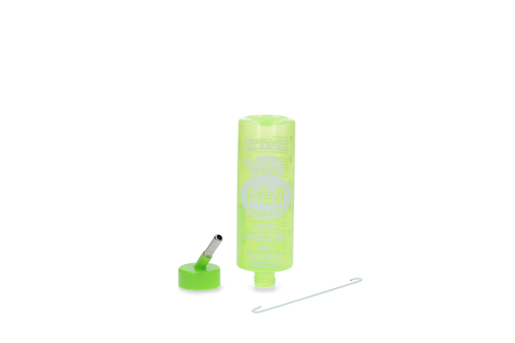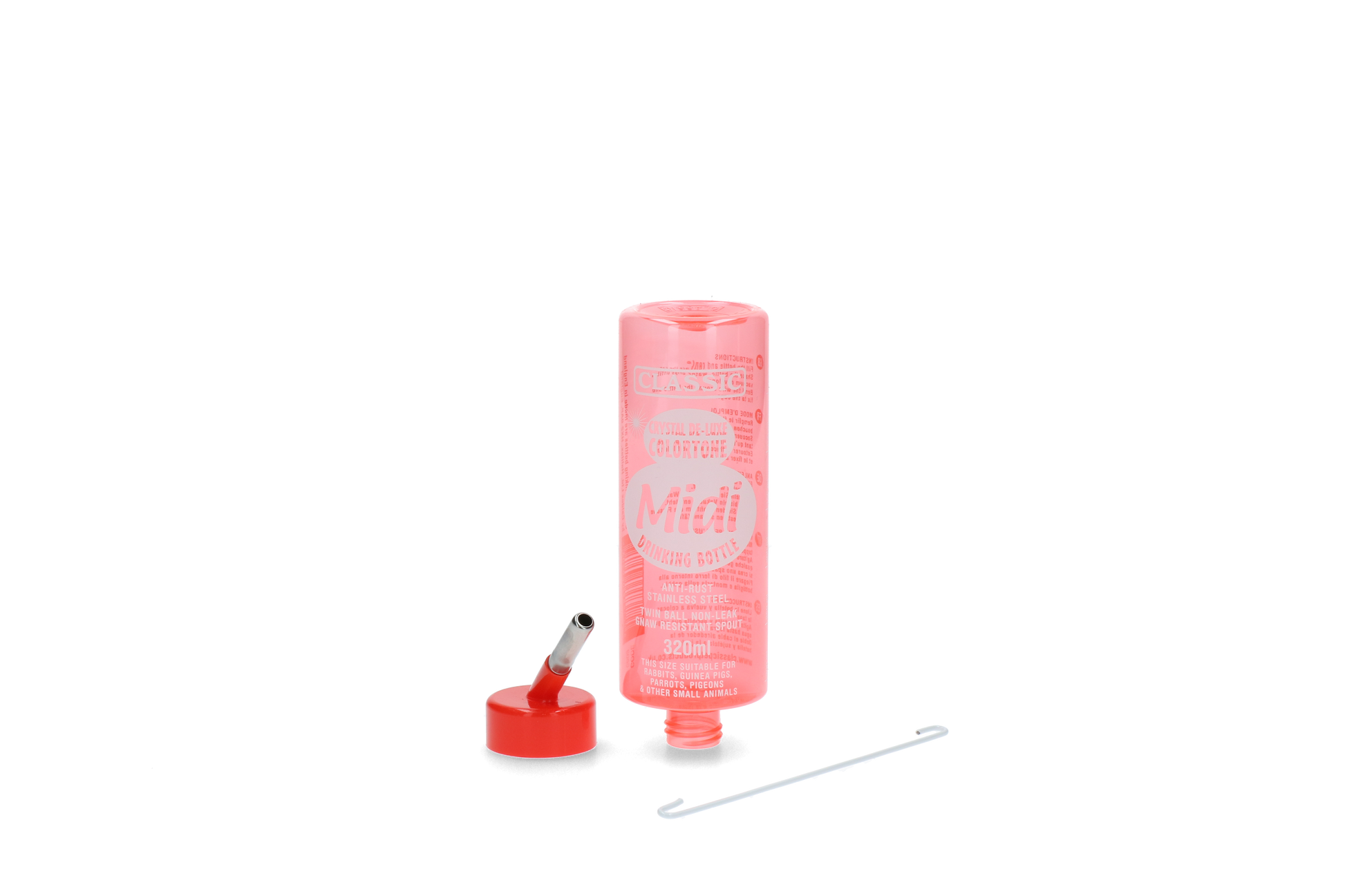 Diese farbige Trinkeflasche macht nicht nur Spaß, sondern ist sie aus langlebigem Kunststoff gefertigt. Sehr geeignet für verschiedene Arten von Nagetieren wie Kaninchen, Frettchen, Chinchillas, Ratten, Meerschweinchen, Hamster und Mäuse. Einfach zu füllen, zu hängen und zu reinigen.