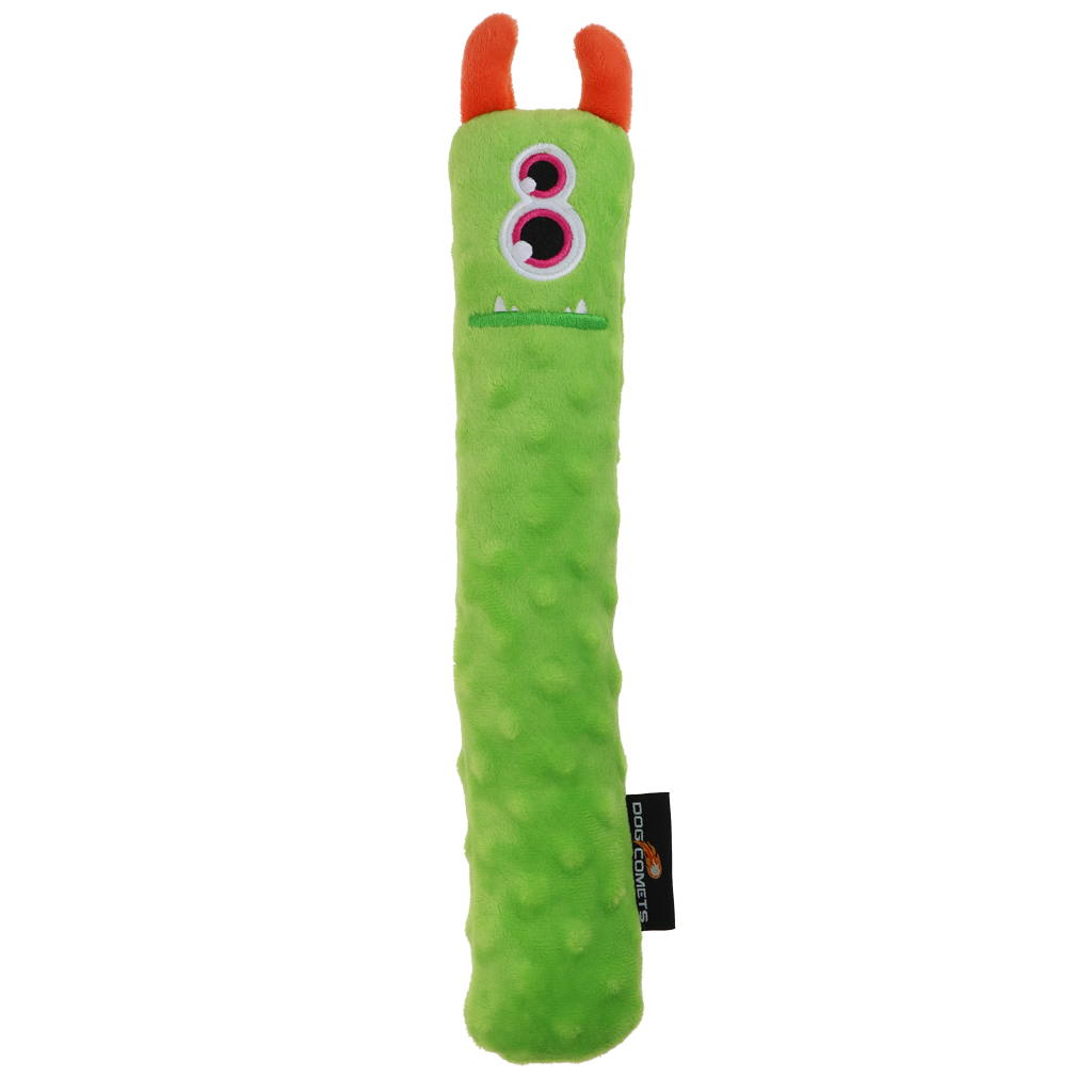 Diese Außerirdischen erobern die Welt zusammen mit den treuesten vierbeinigen Freunden! Diese kuscheligen Wurfstäbchen sind mit einer Schwammfüllung versehen, die sie schwerer und dichter macht als herkömmliches Hundespielzeug. Das knisternde Material im Inneren und der Quietscher sorgen für zusätzliche Stimulation beim Spielen und regen Hunde dazu an, ihre Zähne in das Spielzeug zu versenken. Die Invaders eignen sich perfekt zum Spielen im Haus, zum Kuscheln und für Tauziehen und Apportierspiele. Jeder Invader hat einen einzigartigen Gesichtsausdruck und eine eigene Persönlichkeit.