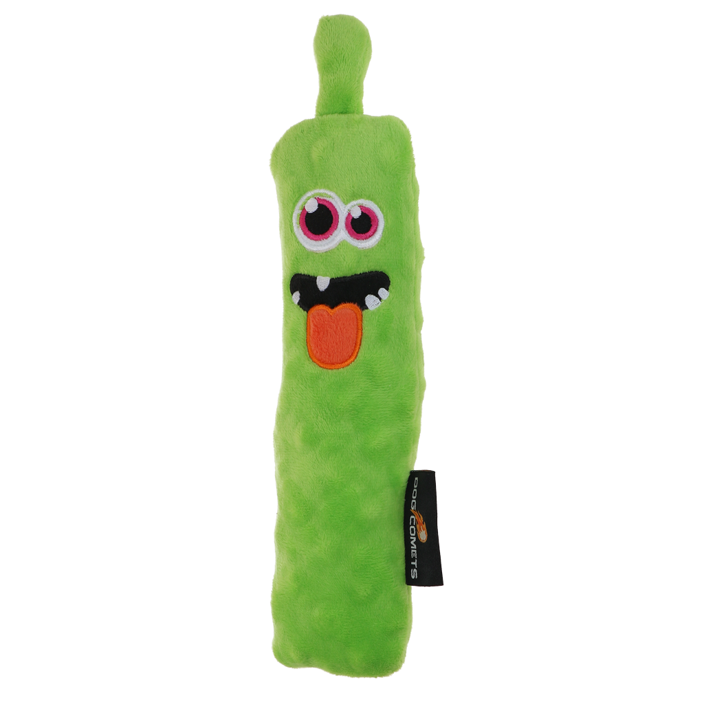 Diese Außerirdischen erobern die Welt zusammen mit den treuesten vierbeinigen Freunden! Diese kuscheligen Wurfstäbchen sind mit einer Schwammfüllung versehen, die sie schwerer und dichter macht als herkömmliches Hundespielzeug. Das knisternde Material im Inneren und der Quietscher sorgen für zusätzliche Stimulation beim Spielen und regen Hunde dazu an, ihre Zähne in das Spielzeug zu versenken. Die Invaders eignen sich perfekt zum Spielen im Haus, zum Kuscheln und für Tauziehen und Apportierspiele. Jeder Invader hat einen einzigartigen Gesichtsausdruck und eine eigene Persönlichkeit.