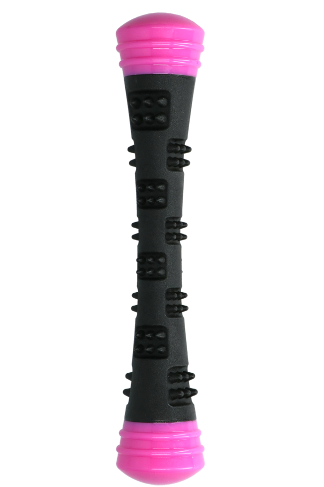 Dieser Wurfstock ist hergestellt aus dauerhaftem Gummi und springt perfekt. Das Material massiert das Zahnfleisch und hält die Zähne sauber. Mit einem Quietscher für noch mehr Spielspaß.