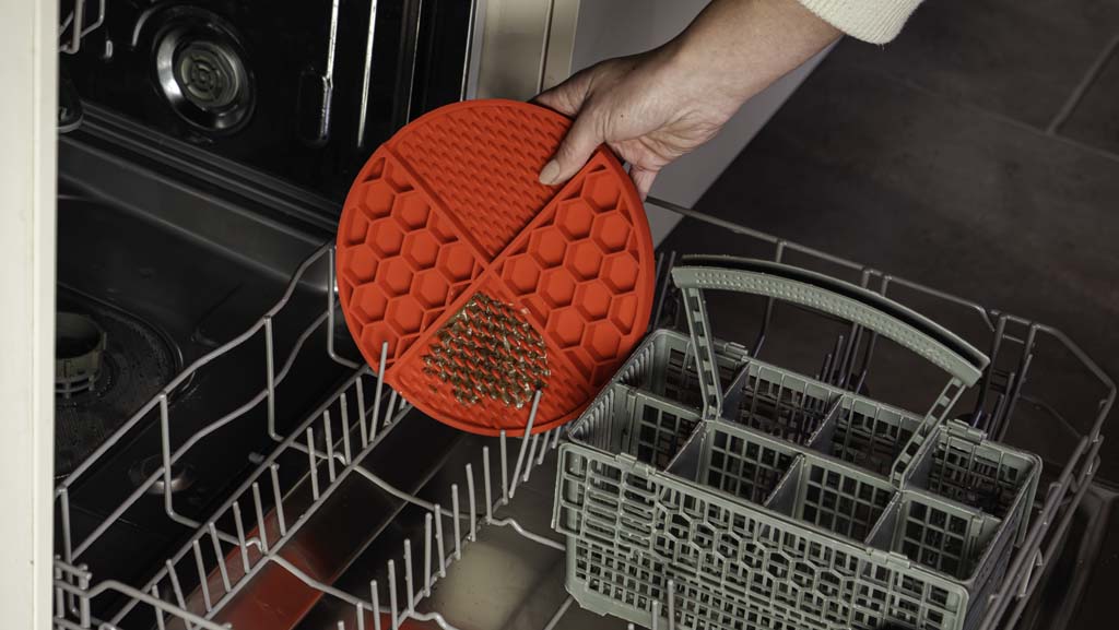 Diese Leckmatte besteht aus 100% Silikon und ist spülmaschinenfest.