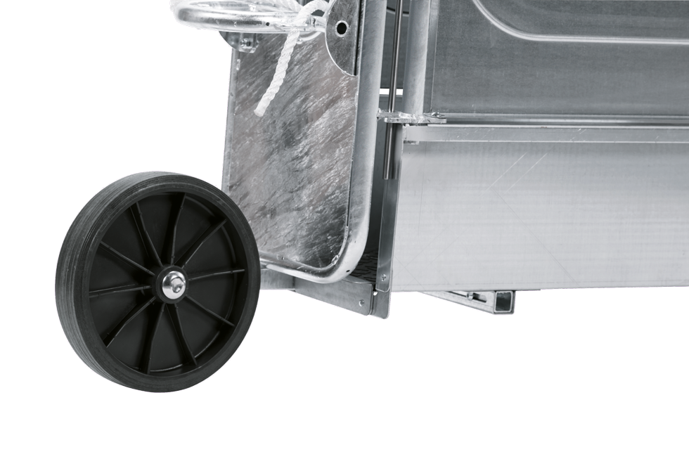 Dieser Bausatz besteht aus einem großen Kunststoffrad und Griffen, die an den Fixierkäfig montiert werden können. Mit diesem Zubehör ist der Käfig leicht zu bewegen. Sowohl das Rad als auch die Griffe sind leicht abnehmbar.