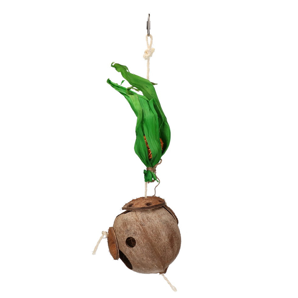 Der Haken sorgt dafür, dass die Kokosnuss sicher und fest aufgehängt werden kann.
