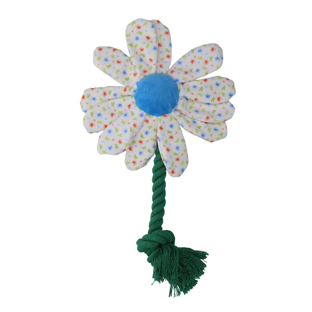 Die Flower bringt den Frühling in den Spielkorb deines Hundes. Mit ihrem fröhlichen Aussehen, der kuscheligen Form und dem robusten Seil eignet sie sich ideal für interaktive Spiele wie Ziehen und Apportieren. Die doppelt genähten Nähte sorgen für zusätzliche Stabilität, sodass Flower auch bei intensivem Spiel standhält. Egal ob in der kleinen oder großen Variante, dieses Spielzeug bringt Farbe ins Haus.