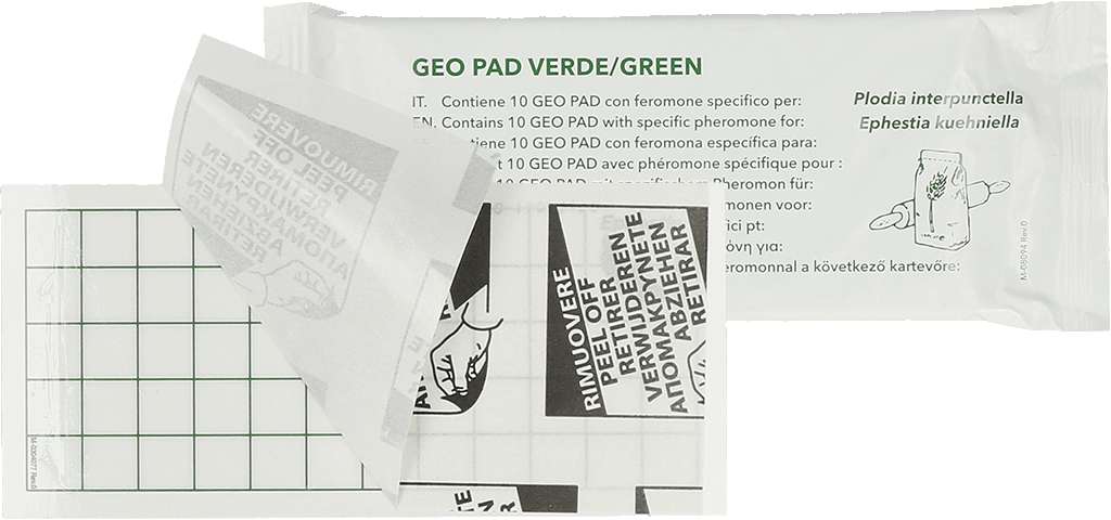 Klebeplatte zur Überwachung und Bekämpfung von Lebensmittelmotten. GEO Klebeplatte für Lebenmittelmotten wird einfach in den Moth Monitor Trap (INPEP-04100) gelegt. In der Klebeschicht ist das spezifische Pheromon integriert, um Ephestia / Plodia-Mottenarten anzulocken.