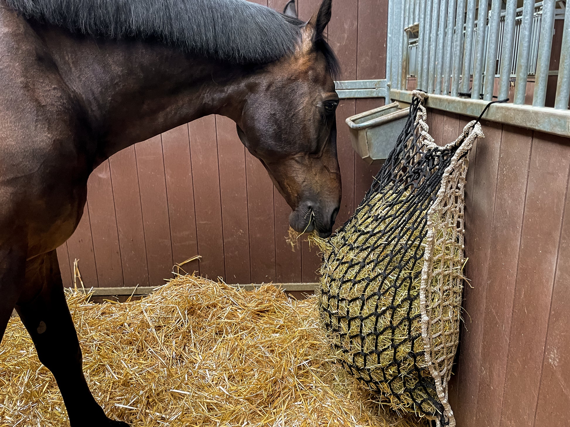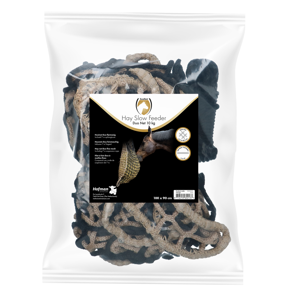 Sehr starkes, feinmaschiges Heunetz, das dafür sorgt, dass das Heu langsam aufgenommen wird.