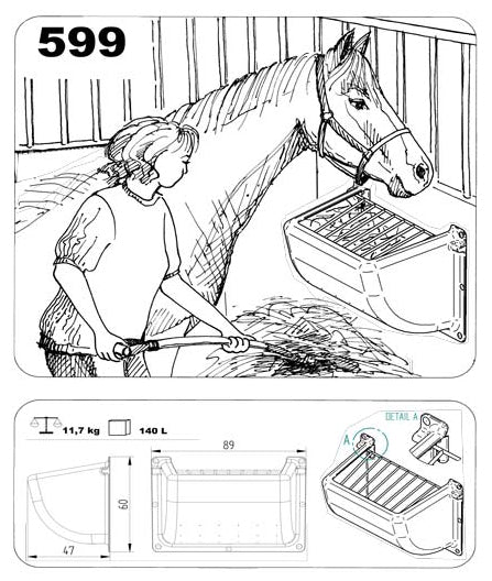 Sobald es mit Heu gefüllt ist, kann sich das Pferd stundenlang unterhalten und verhindert es so die Langeweile im Stall. Außerdem geht kein Heu verloren, was Verschwendung verhindert.