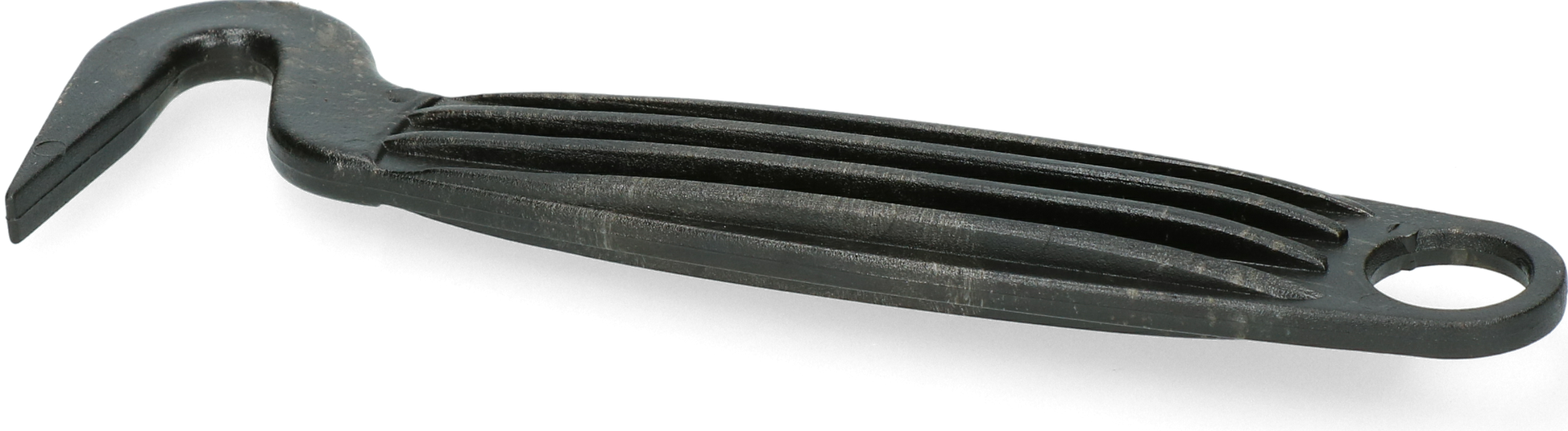 Ein sehr haltbarer, vollgeformter Hufkratzer aus Kunststoff. Einfache Lagerung durch das integrierte Loch.