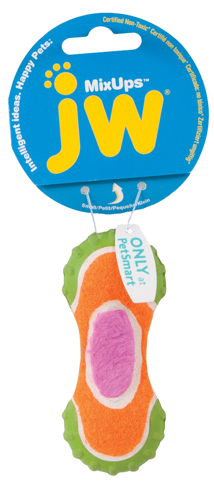 Jetzt gibt es Spielzeug worin diese Materialien kombiniert sind. Hierdurch sind die JW Mixups fast unwiderstehlich für jeden Hund. Der medium Knochen verfügt über einen Quietscher für extra Spielvergnügen.