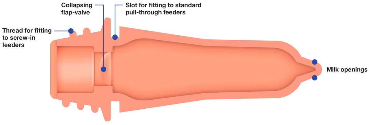 Der ideale Sauger für den Melkeimer, wie z.B. den 2-seitigen flachen Kälbereimer. Einfach ohne Kopplung zu verwenden.