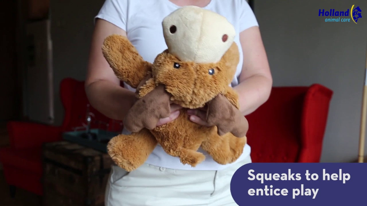 • Quietscht, um den Spieltrieb zu fördern