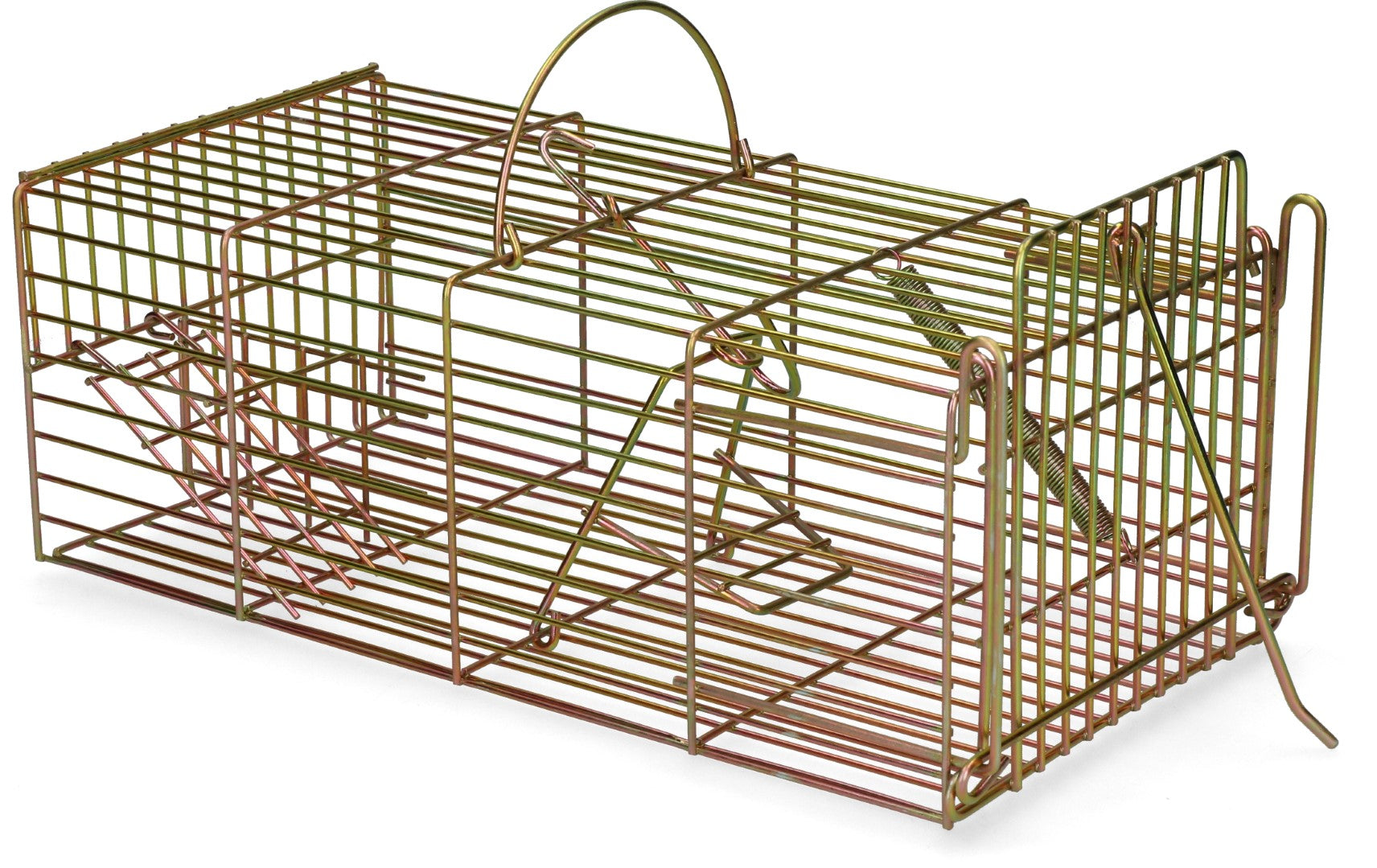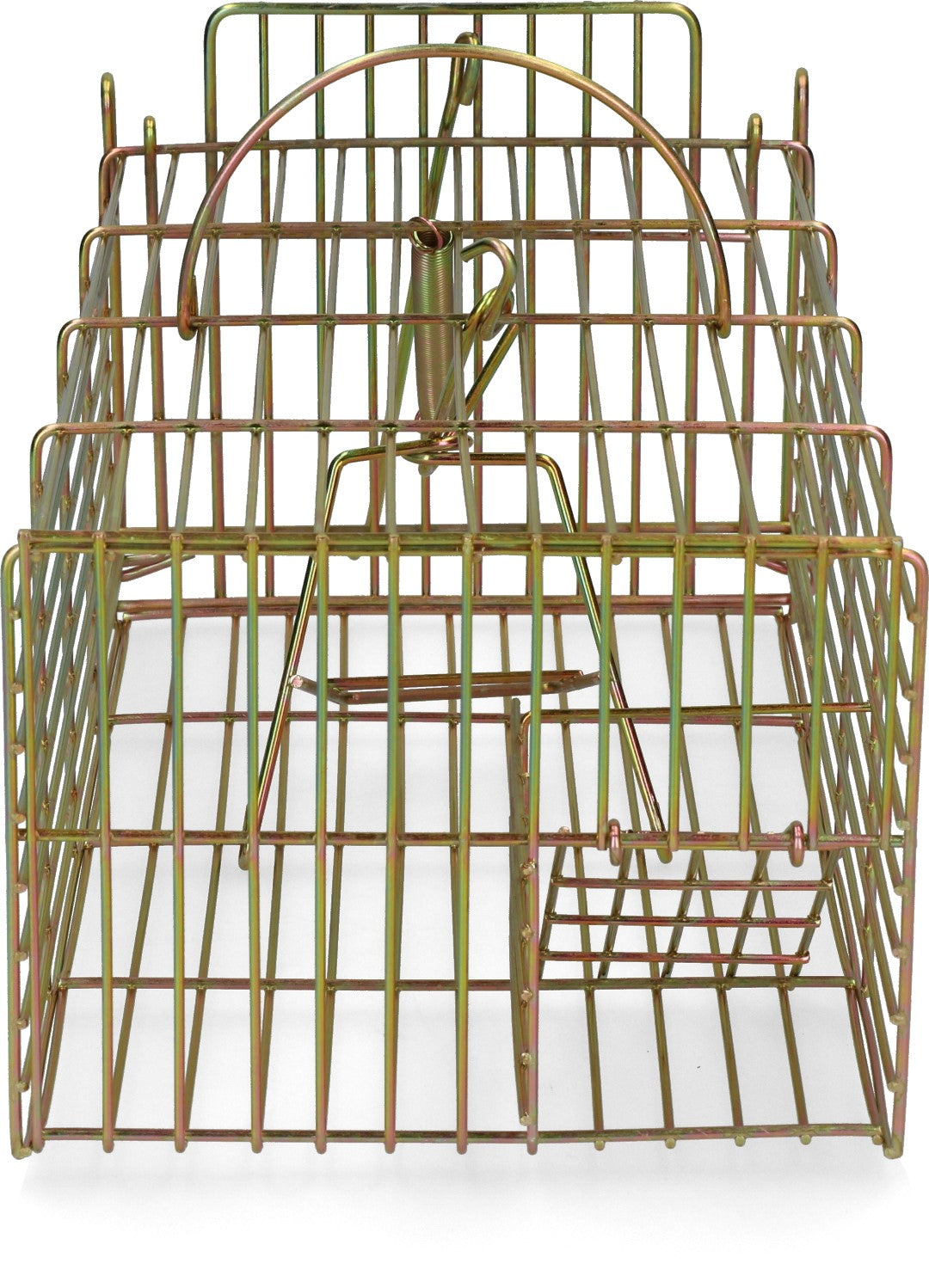 - Jetzt dient die zweite, kleinere Öffnung als Falle für mehrere Ratten. Diese Öffnung hat eine spezielle Konstruktion, die es ermöglicht, hineinzugehen ohne das es einen Weg zurück gibt.