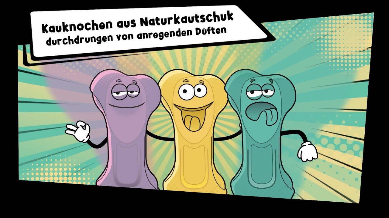 Diese 100% natürlichen Kauknochen aus Kautschuk sind mit anregenden Duftstoffen imprägniert: