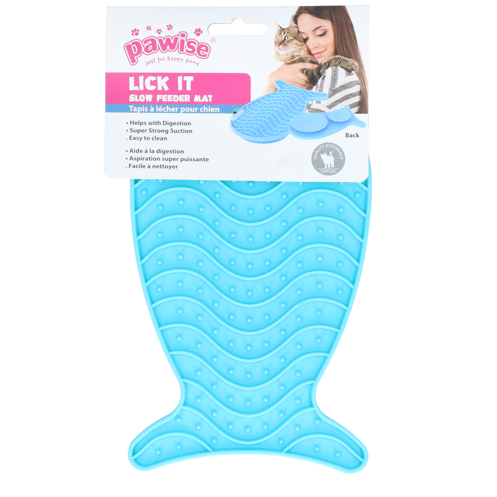 Diese Pawise lick it Leckmatte in Form eines Fisches kann mit Futter gefüllt werden, so dass die Katze sich länger mit ihrem Futter beschäftigen kann. Die Leckmatte ist auch sehr gut geeignet, um die Katze abzulenken, wenn sie z.B. gebadet oder gebürset wird. Füllen Sie die Matte mit Futter und kleben Sie sie au eine glatte Oberfläche.