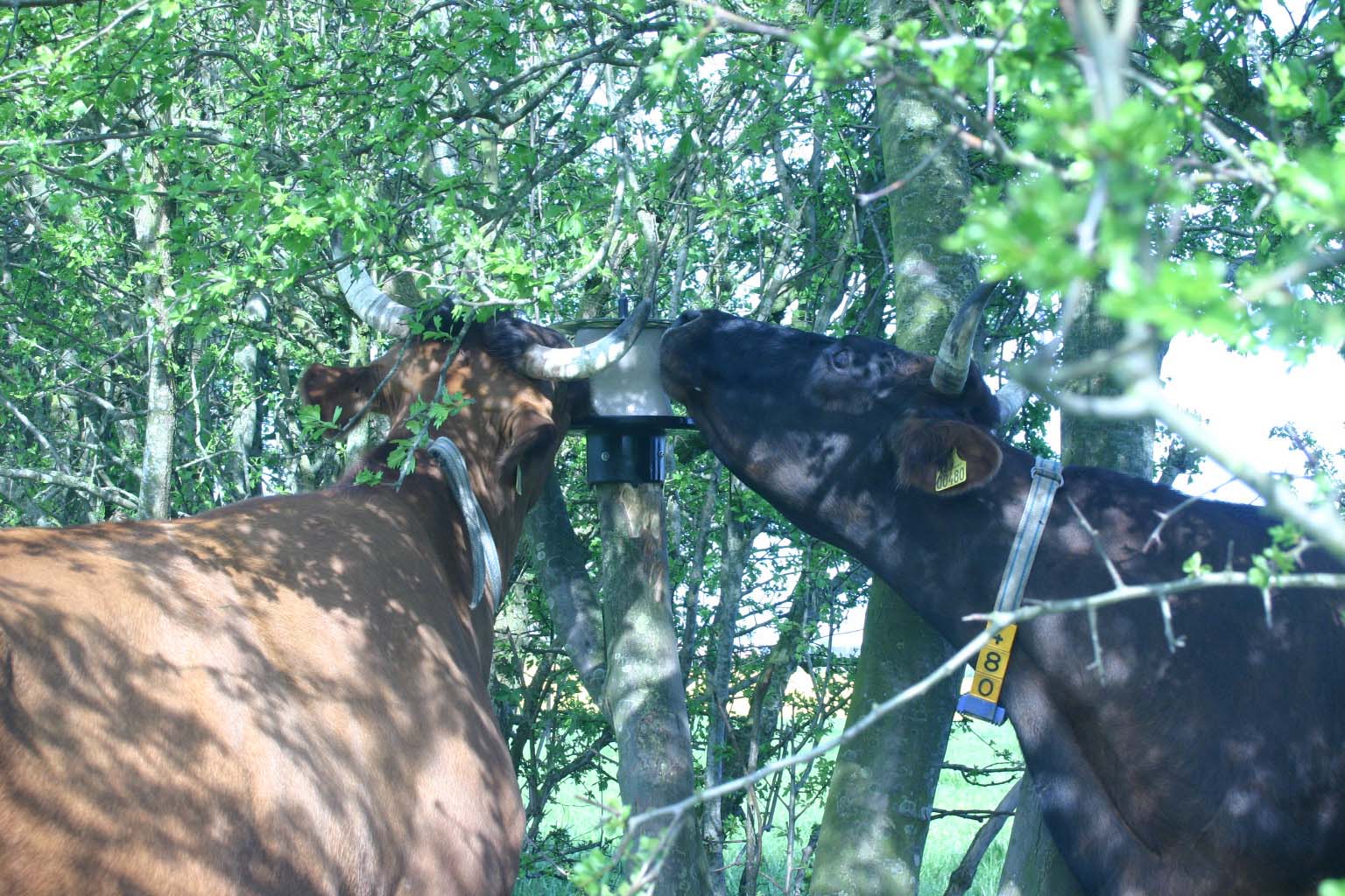 Weidetiere: Rückenhöhe der Tiere. Die Tiere können das Salz direkt vom Leckstein und vom Pfahl aufnehmen.