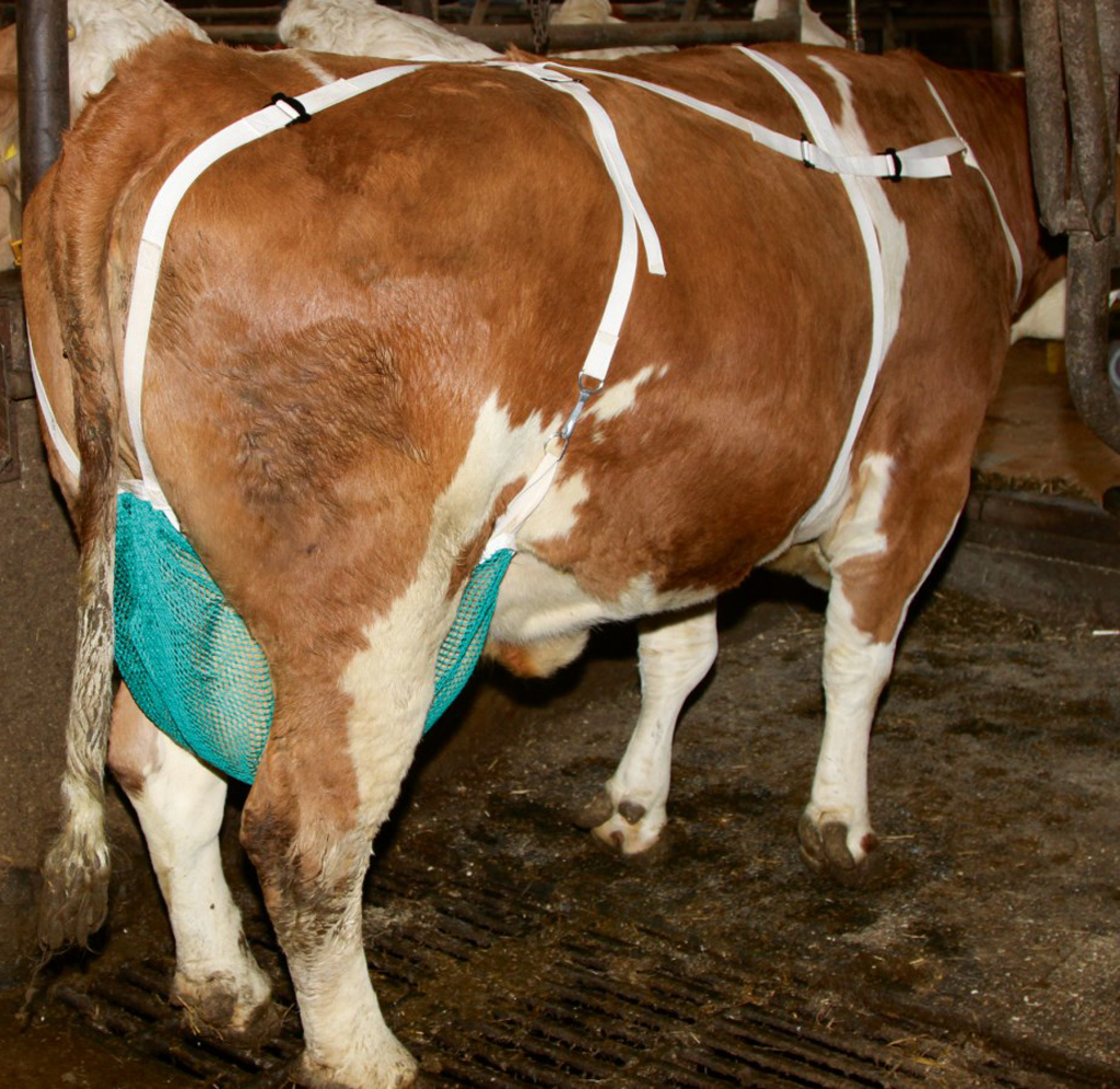 Der Zitzenschutz mit Nackengurt ist ein wertvolles Hilfsmittel, um Zitzenschäden bei Kühen zu verhindern. Das Euternetz schützt die Euter und Zitzen sowohl auf der Weide als auch im Stall und beugt Verletzungen durch Nuckeln oder Beißen durch die Kuh selbst oder andere Kühe vor. Dank des Brust- und Halsbands sitzt der Schutz gut und bietet zusätzlichen Halt. Während des Melkens lässt sich ein Haken einfach öffnen, sodass die Verwendung praktisch und effizient bleibt.